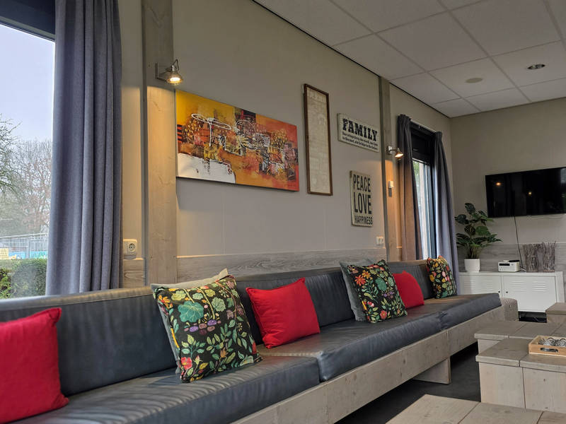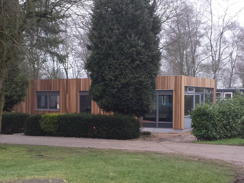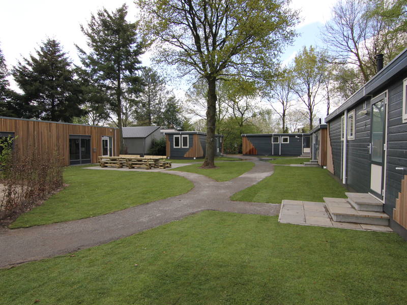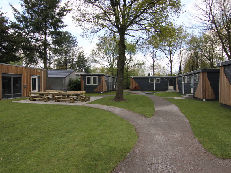 Der Heidegaard besteht aus einem zentralen Raum, hinter dem sich vier separate Schlaf Lodges befinden. Das Ganze hat ein modernes, attraktives Erscheinungsbild.